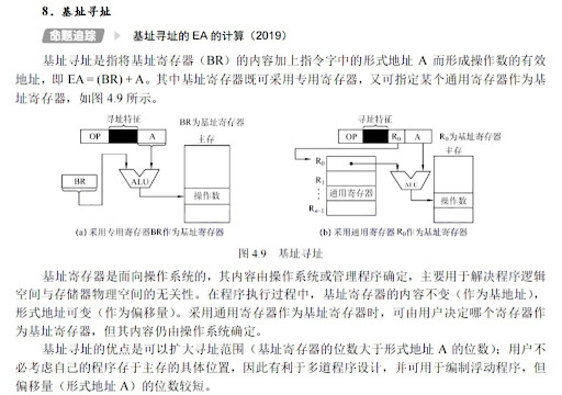 基址寻址(编制浮动程序) :利用硬件寄存器实现地址重定位,由操作系统设置基址寄存器BR 完成逻辑地址到物理地址的转换blog.csdn.net。它允许程序在装入时被放到任意内存区域,起始物理地址通过BR灵活调整,实现程序整体搬移而无需修改代码 blog.csdn.net。基址寻址扩大了地址空间的利用范围(偏移量位数较小但通过增加BR高位可以定位更大内存)blog.csdn.net。其不足之处在于需要占用一个寄存器 来存储基址,在寄存器资源有限时不是最优选择,而且如果程序需要访问不同内存段,可能需要频繁更新BR ,增加了实现复杂性和运行开销blog.csdn.net。尽管如此,基址寻址在操作系统中的应用极为重要,它提供了程序装入时重定位的机制,使多个程序可以并发存在于不同内存区域而互不干扰blog.csdn.net。综合来看,相对寻址偏重于编译时/运行时的代码自适应 (无需重定位寄存器,代码自身独立于位置),而基址寻址偏重于操作系统支持的装入重定位(通过硬件寄存器实现地址映射)。两种方式各有应用场景,在408考研计算机组成原理要求下都属于重要的程序浮动实现手段,理解它们有助于灵活设计可重定位的程序代码。