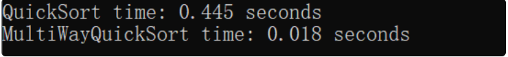 System.out.println("MultiWayQuickSort time: " + (end - start) + " milliseconds");