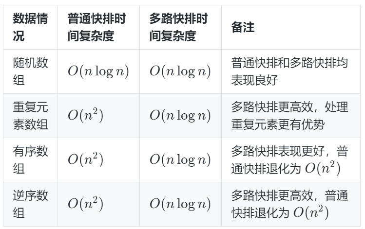 考虑最坏情况下的优化策略: 多路快速排序虽然平均情况下性能良好,但在最坏情况下仍可能退化为 O(