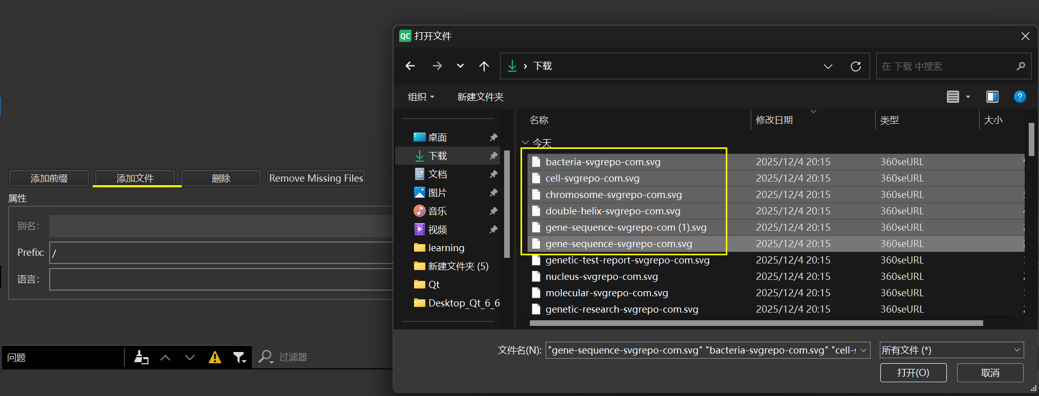 6、然后便可以添加文件,一次性可以添加多个文件,添加文件后按ctrl+s保存,否则为组件添加图标时不会显示
