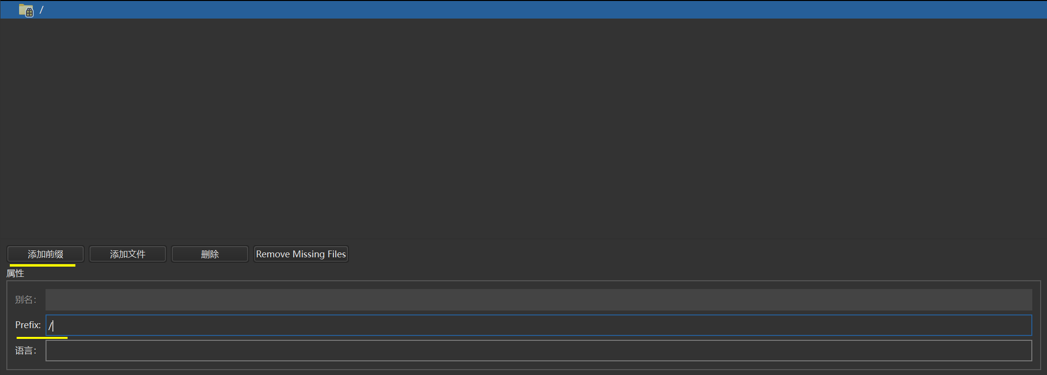 5、点击添加前缀,前缀可以改为/