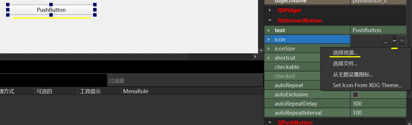 选中一个组件,在属性界面的icon子属性选择"选择资源"