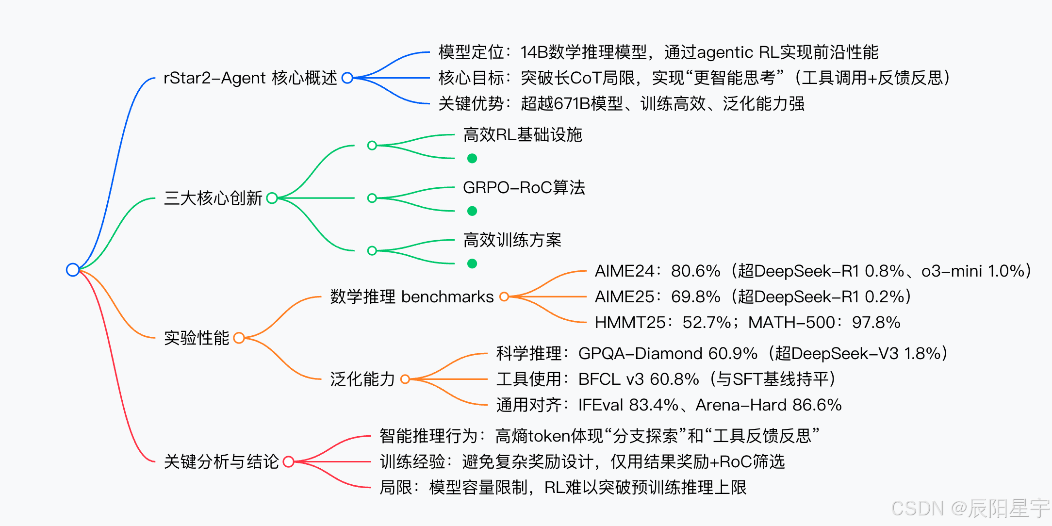 简介:rStar2-Agent 是微软研究院推出的 14B 数学推理模型,通过智能体强化学习(agentic RL)实现前沿性能,核心是让模型 "更智能思考" 而非仅 "更长思考"。