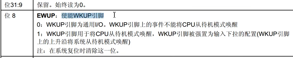 对于待机模式,唤醒条件就是指定的4个信号。没有对中断唤醒和事件唤醒做出区分。所以我们也就不用进行区分了。
