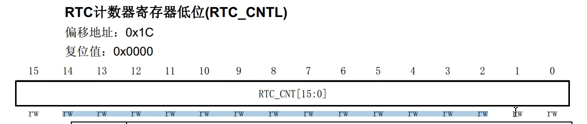 我们直接给一个RTC_GetCounter()就是当前的秒数+10就是闹钟值。之后在下面,我们还计划显示一下这个闹钟值,但是这个设置闹钟值的寄存器是只写的,写进去之后就读取不出来了,怎么判断他是只读的还是只写的呢。