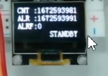 然后我们可以看到,第一行是当前秒数,第二行是闹钟值,第三行是闹钟标志位,等记录到时间后,闹钟标志位置1。