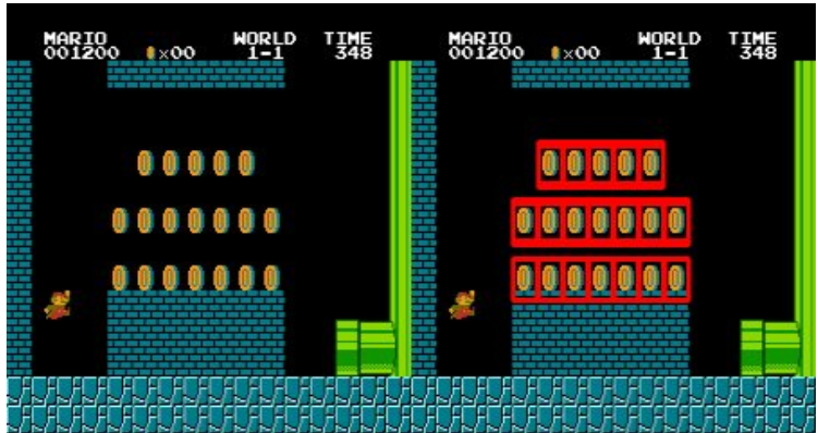 在上一节中,我们搜索了梅西的脸部图像,该图像仅在图中出现一次。假设您正在搜索的对象在图中出现了多次, cv.minMaxLoc() 将不会为你提供所有的匹配点。在这种情况下,我们将使用阈值。所以在这个例子中,我们将使用着名游戏 Mario 的截图,并在其中找到硬币