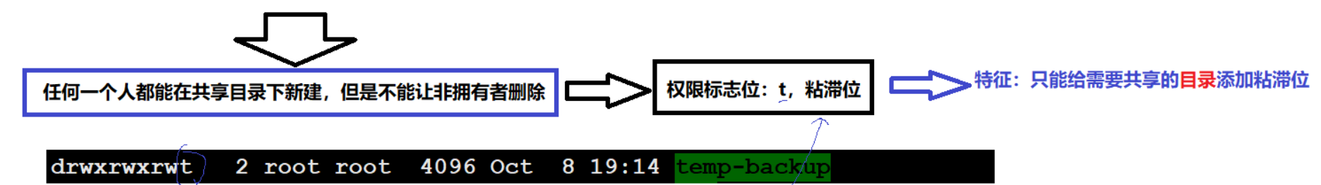 此时就会发现若要删除一个目录下的文件和该文件的权限是没有关系的。而在多人使用公共目录下,有时要保证非拥有者不能删除该文件。由此产生粘滞位。