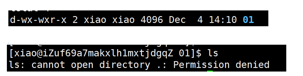在目录文件中若没有r权限就无法查看当前目录:如图: