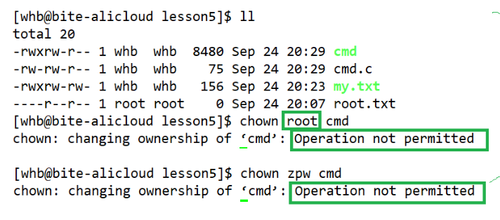 注意:用户只能更改自己创建的文件权限,别的用户是没有权限更别别人文件权限。