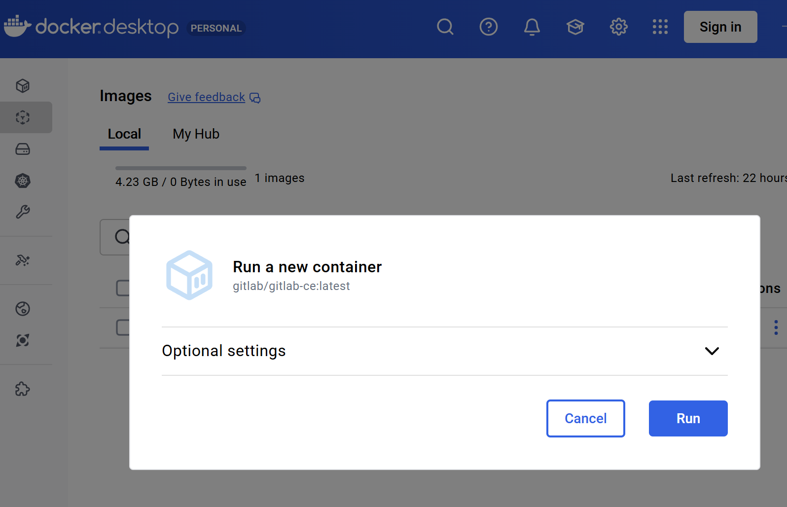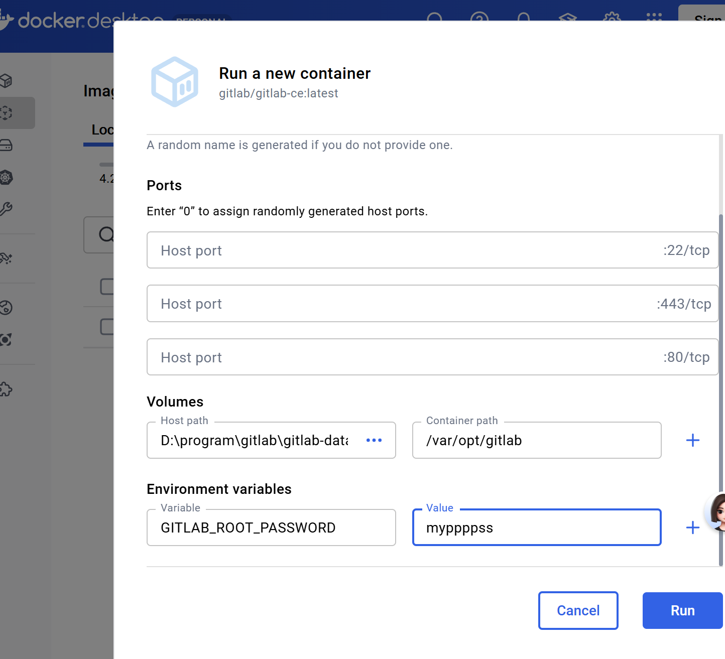docker run -d --hostname gitlab.local --name gitlab-ce -p 80:80 -p 443:443 -p 2222:22 --restart always -v gitlab-config:/etc/gitlab -v gitlab-logs:/var/log/gitlab -v gitlab-data:/var/opt/gitlab gitlab/gitlab-ce:latest