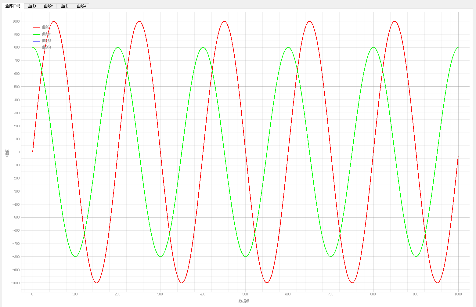 最多支持 4 条曲线显示:曲线1(红)、曲线2(绿)、曲线3(蓝)、曲线4(黄)