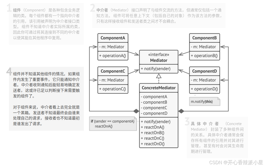 中介者模式(Mediator Pattern)是一种行为设计模式,它定义了一个中介对象来封装一组对象的交互。中介者模式通过使对象之间的交互仅通过中介者进行,从而减少对象之间的直接依赖,使对象之间的耦合松散,增加代码的可扩展性和可维护性。