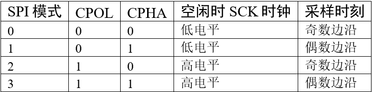 SPI共有4种通讯模式,由CPOL与CPHA控制。