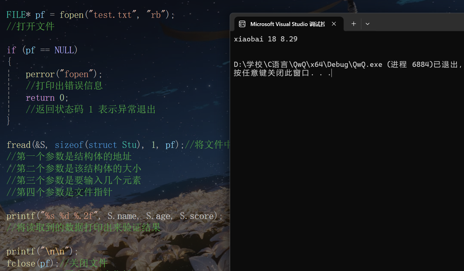 fread(&S, sizeof(struct Stu), 1, pf);//将文件中的数据输入到结构体中