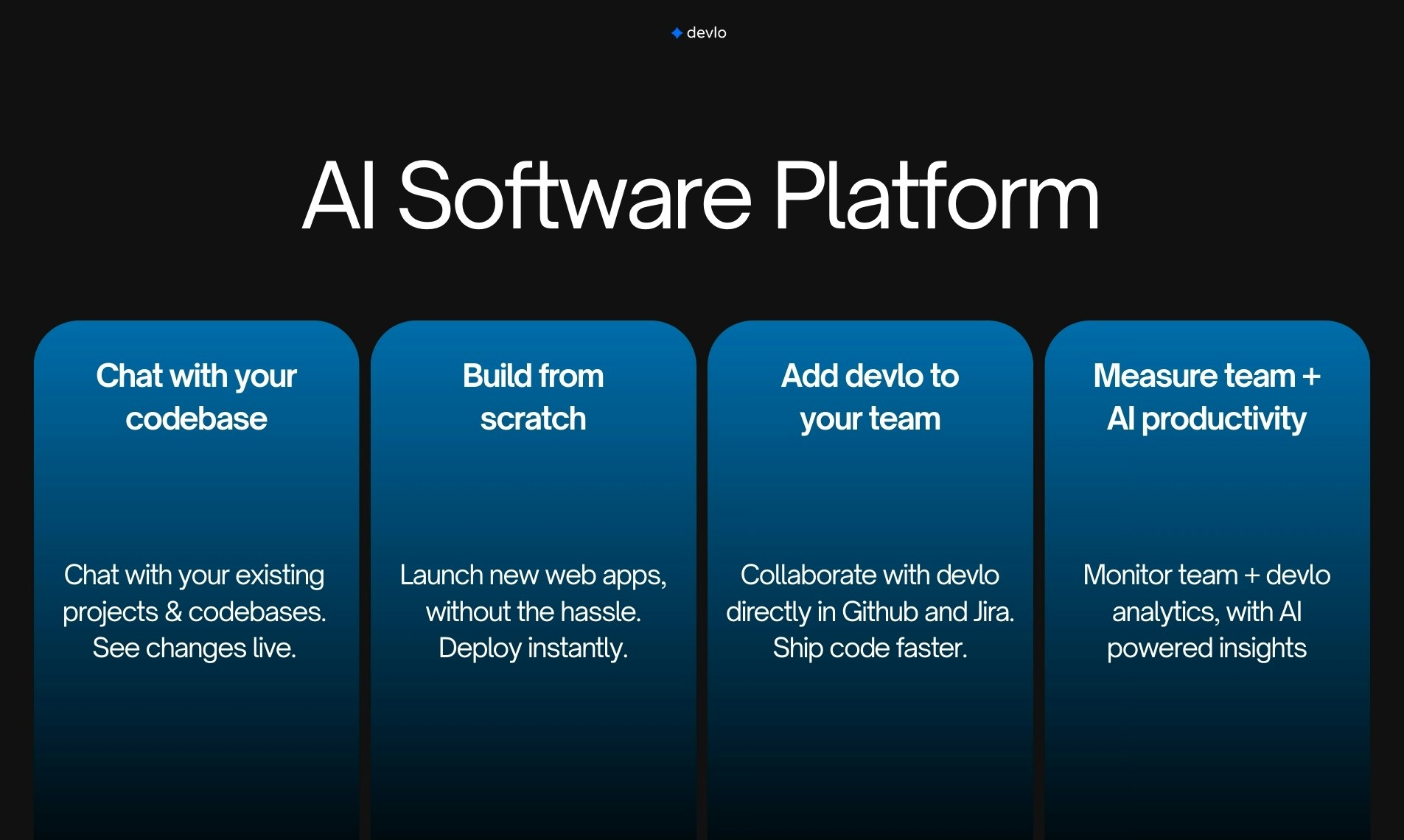 关键词:devlo, 软件开发, 团队协作, 实时预览, 一键部署, 代码审查, 项目管理, AI生产力, GitHub集成, Jira集成