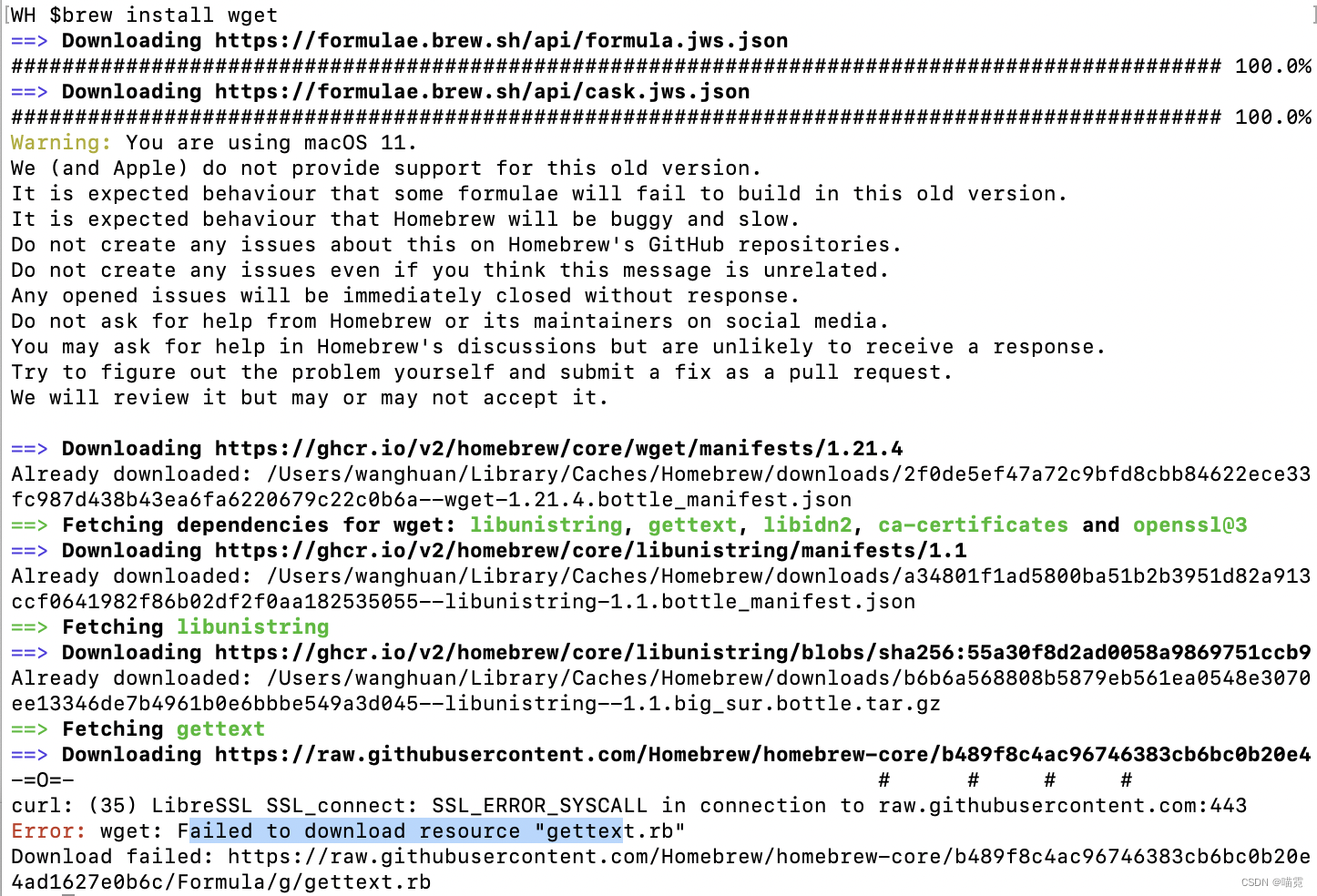 解决方法:Mac安装wget流程及异常解决_姬问己的博客-CSDN博客