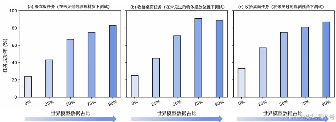 这意味着,GigaWorld-0生成的合成数据质量已经高到足以"以假乱真",能够让模型学到可泛化到真实世界的通用技能。这成功验证了"世界模型即数据引擎"这一范式的巨大潜力。