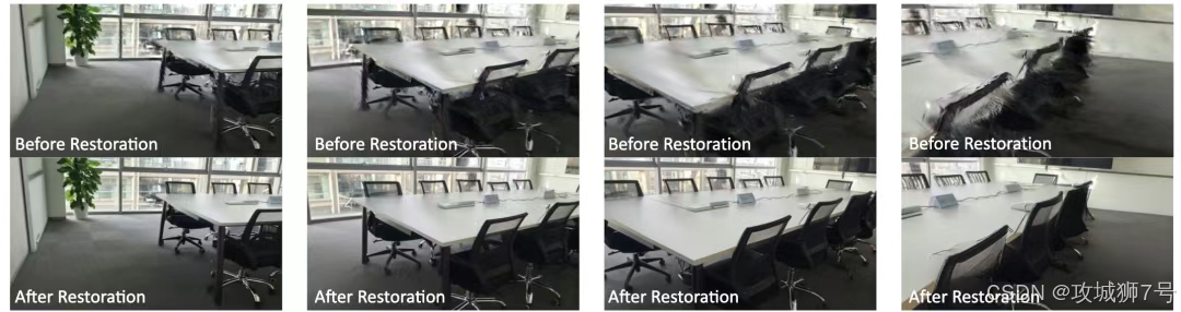 (1)构建逼真环境(背景重建): 它使用前沿的**3D Gaussian Splatting (3DGS)**技术,能够从几张照片中极速重建出照片级真实感的3D环境,无论是杂乱的厨房还是光影复杂的客厅,都能精准还原。