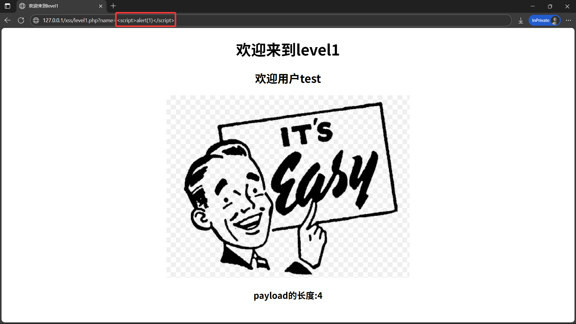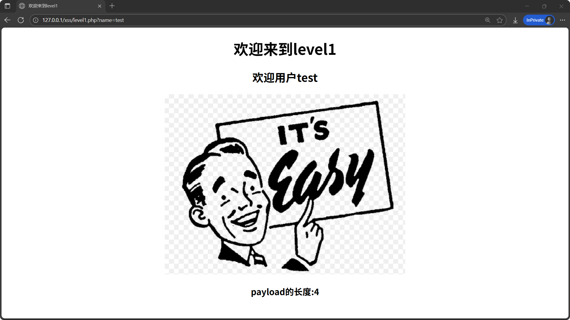 | Level 1 | 无任何过滤,直接输出到页面 | test换成name=<script>alert(1)</script> |