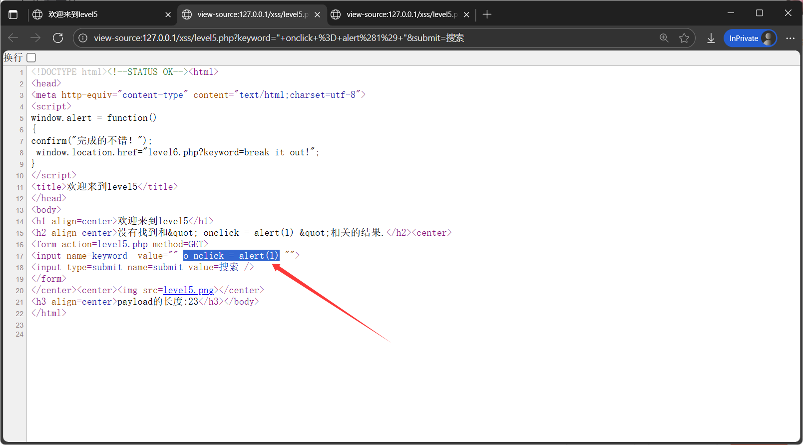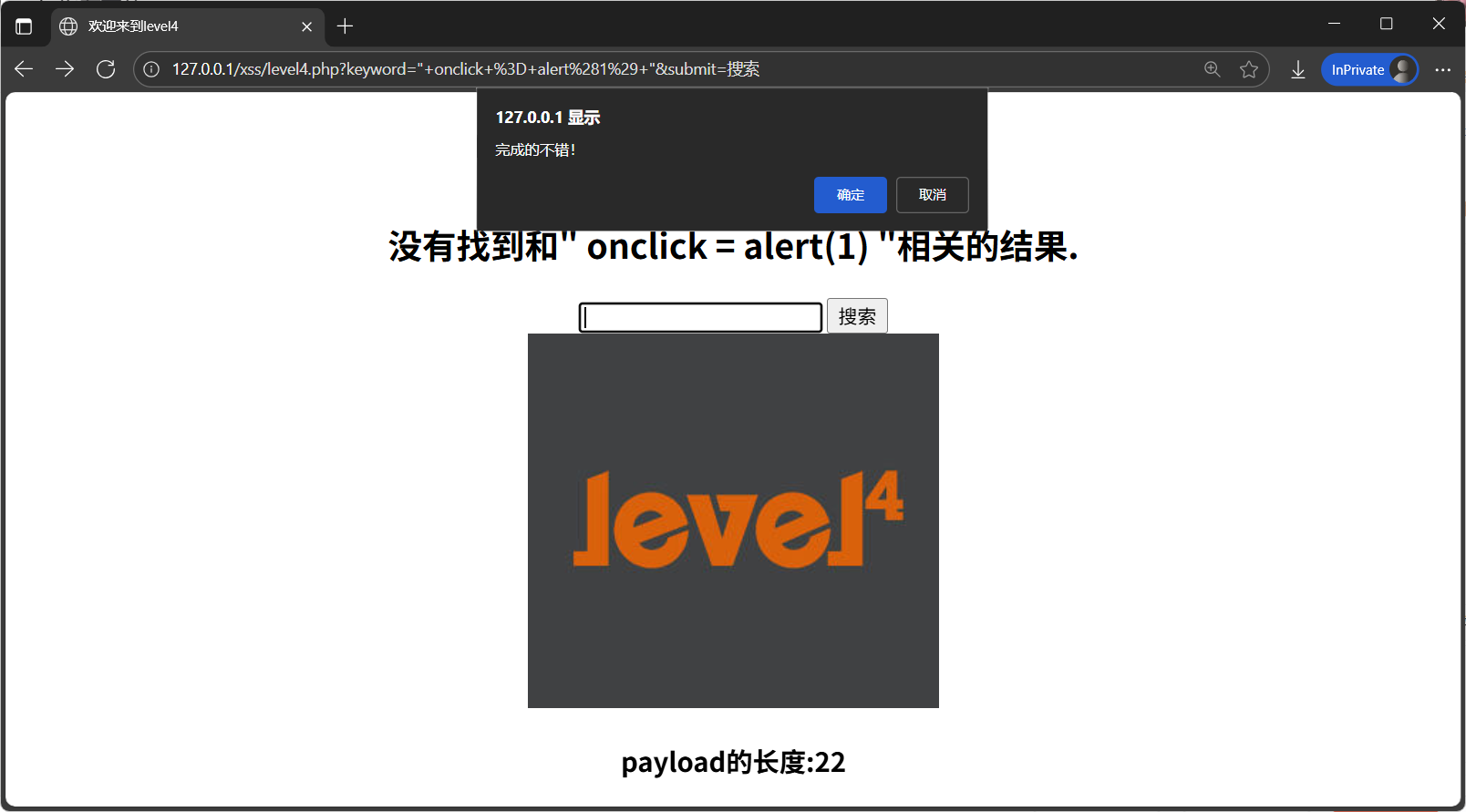 | Level 4 | 尖括号被过滤,但可用事件属性 | " onclick=alert(1) " |