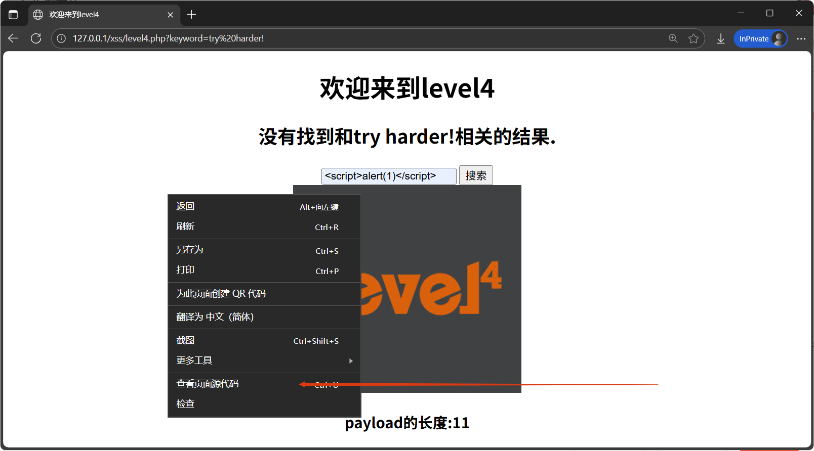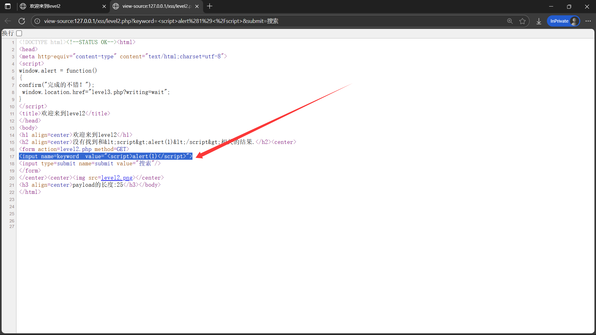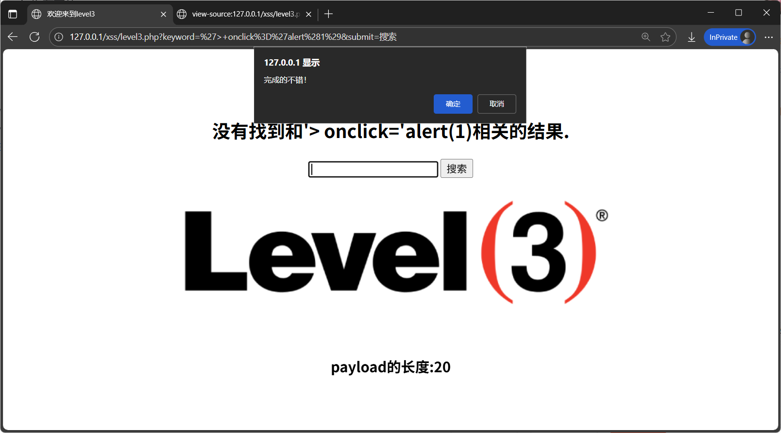 | Level 2 | 输入在 HTML 标签属性内,需闭合标签 | "><script>alert(1)</script> |
