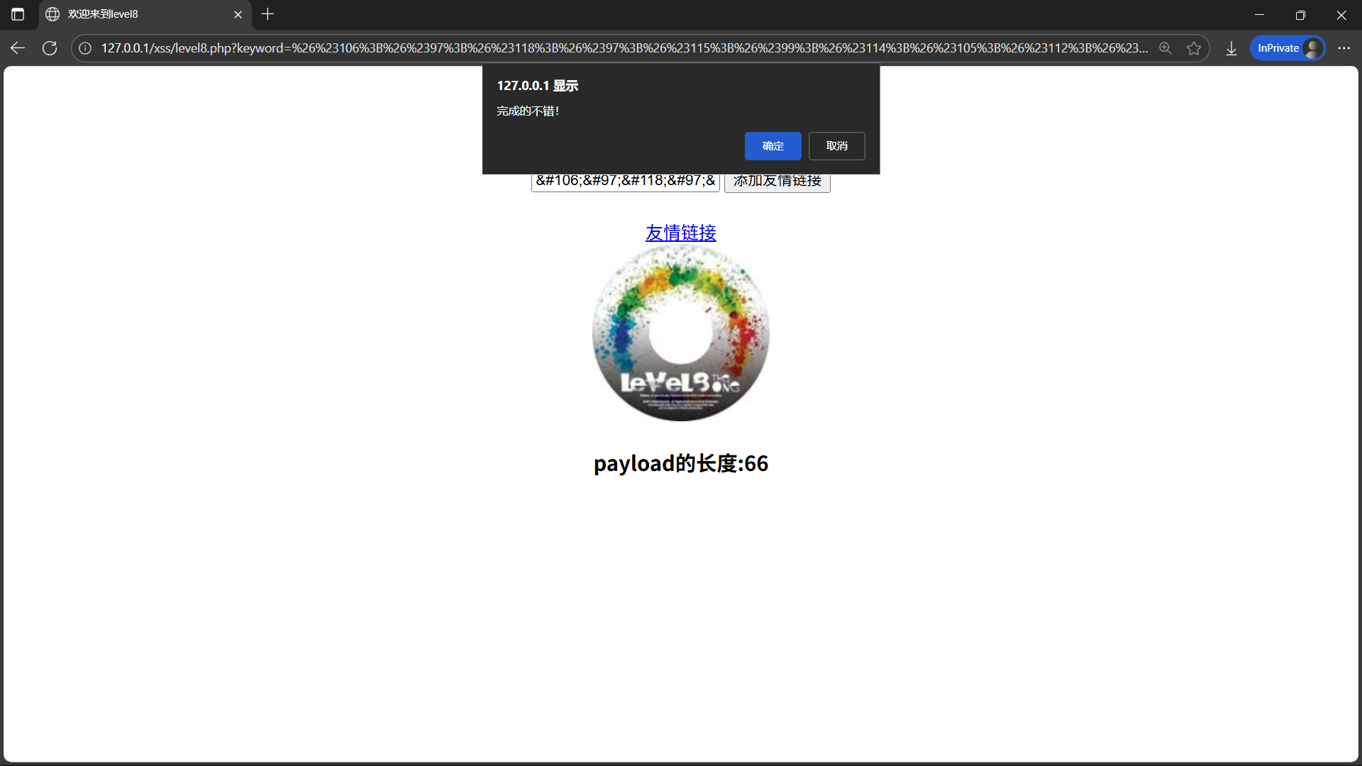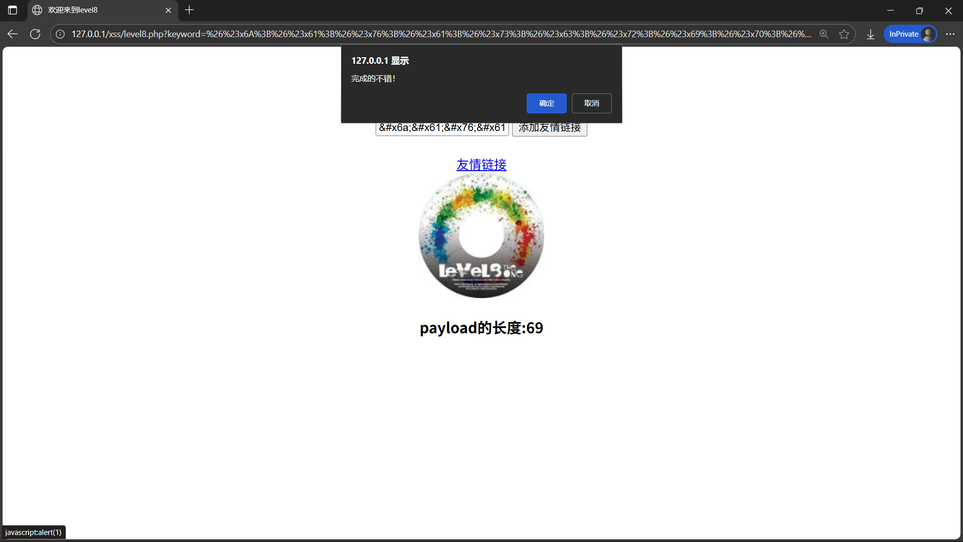 | Level 8 | 过滤了大部分关键字,但支持 HTML 实体编码 | javascript:alert(1) |
