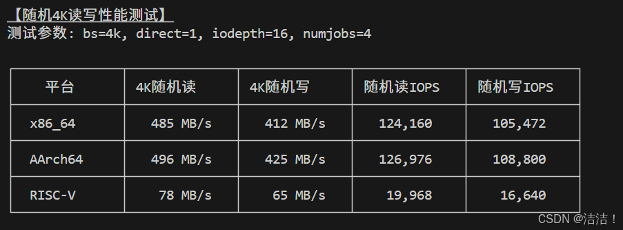 | 平台 | 4K随机读 | 4K随机写 | 随机读IOPS | 随机写IOPS |