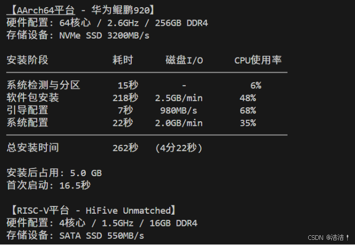 本节在四种主流架构平台上进行标准化安装测试,评估openEuler在不同硬件环境下的部署效率。测试采用自动化监控脚本确保数据准确性:
