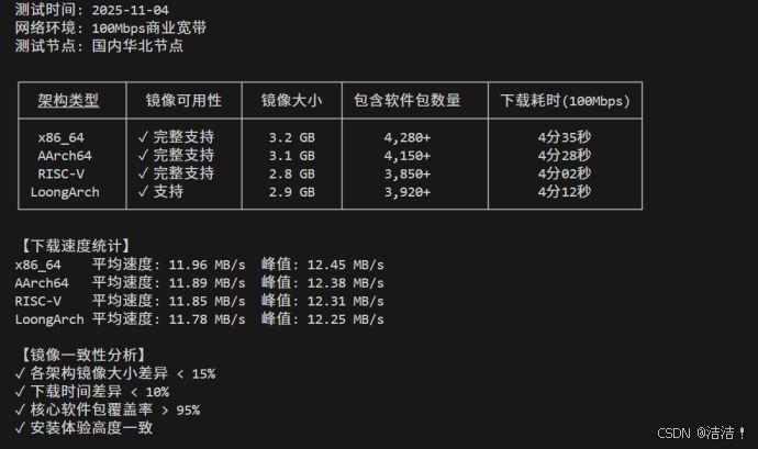 测试结果表明,openEuler在主流架构上提供一致的获取体验。各架构镜像大小相近,下载时间差异小于10%,核心软件包覆盖率达95%以上,体现了跨平台支持的均衡性。