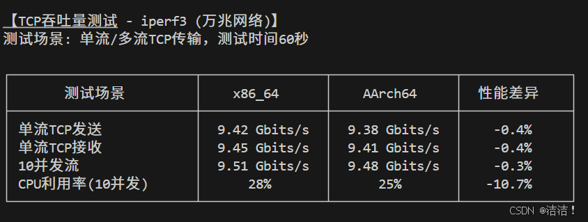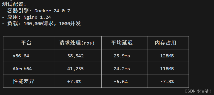 | 测试场景 | x86_64 | AArch64 | 性能差异 |