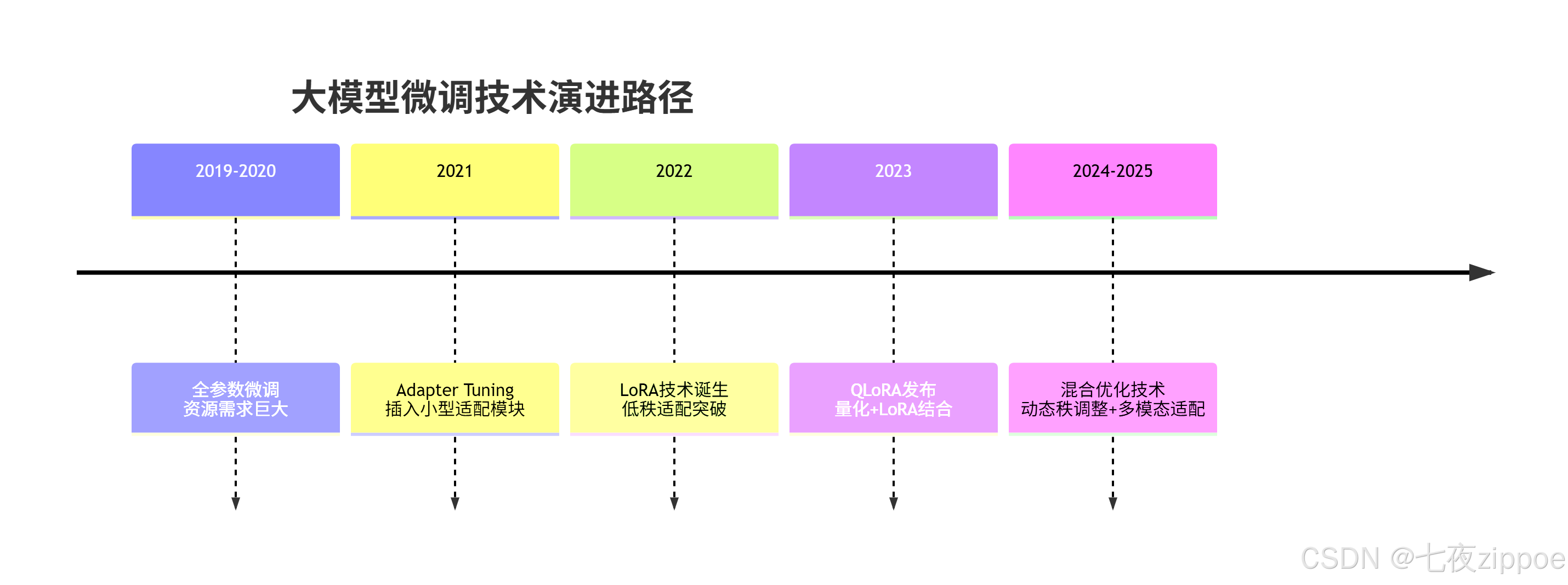 微调技术的演进路径呈现出明显的"轻量化"趋势: