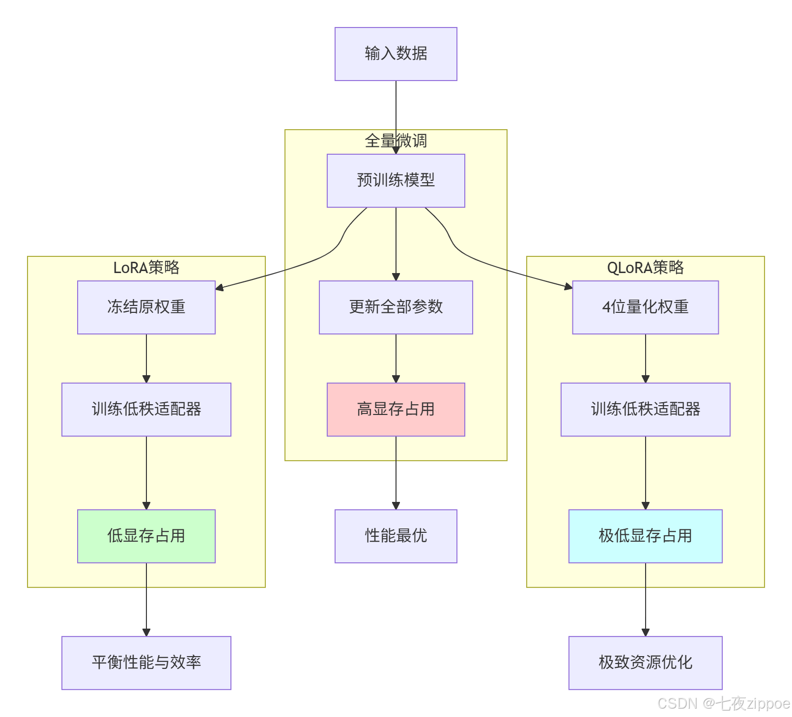 | 评估维度 | 全量微调 | LoRA微调 | QLoRA微调 |