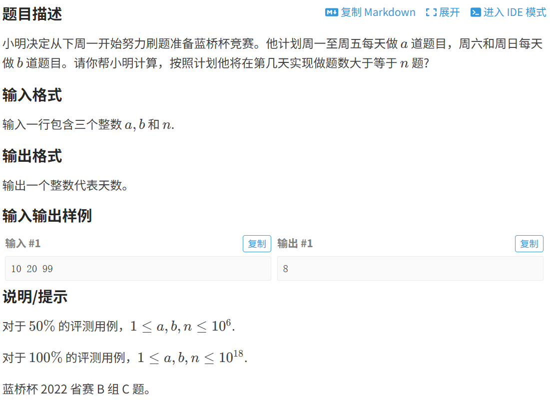 P8780 [蓝桥杯 2022 省 B] 刷题统计 - 洛谷