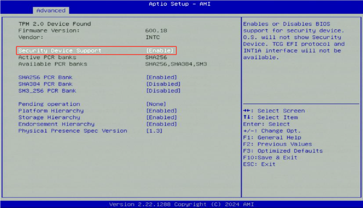 1.1 开机进入BIOS选单,至Advanced页签的Trusted Computing选项。