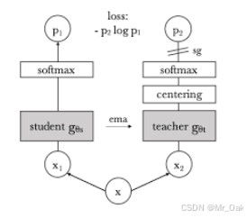 ②Sinkhorn-Knopp centering :教师模型中的原有的softmax-centering 存在不稳定性,因此teacher网络用了Sinkhorn-Knopp centering来避免坍塌、增强与student的一致性,同时提高计算效率;
