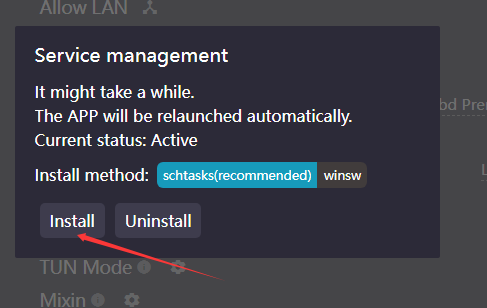点击工具界面中提示的 "安装服务(Install Service)" 按钮。