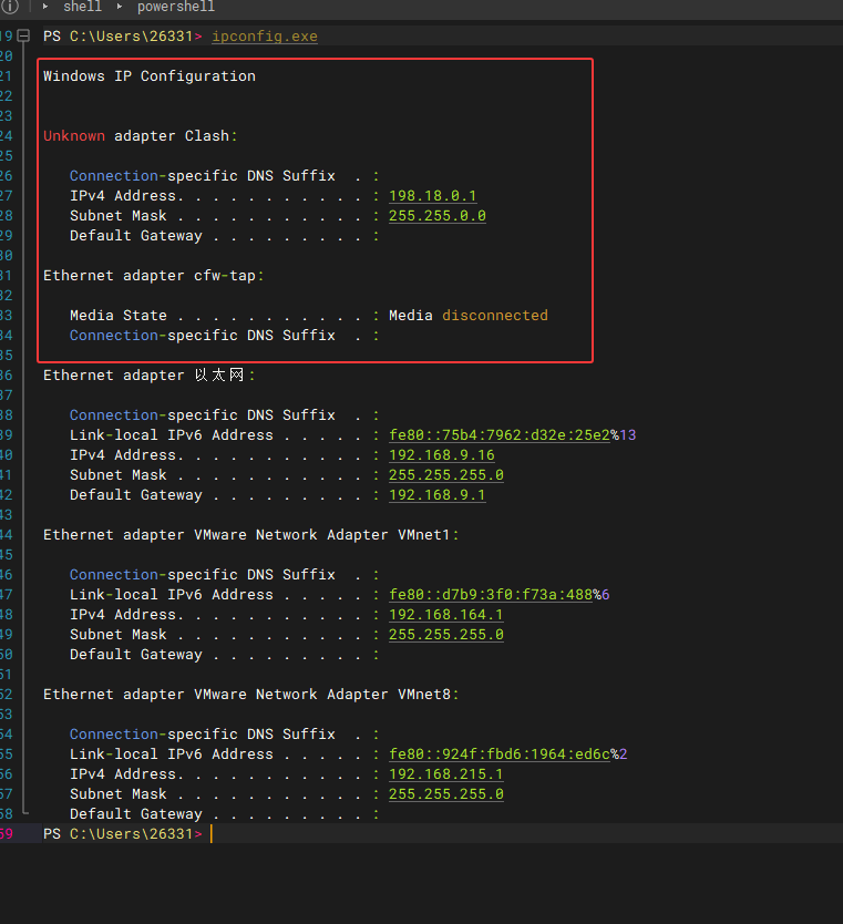 请重新运行 步骤二 的 ipconfig 命令,确认虚拟网卡已成功出现在列表中。