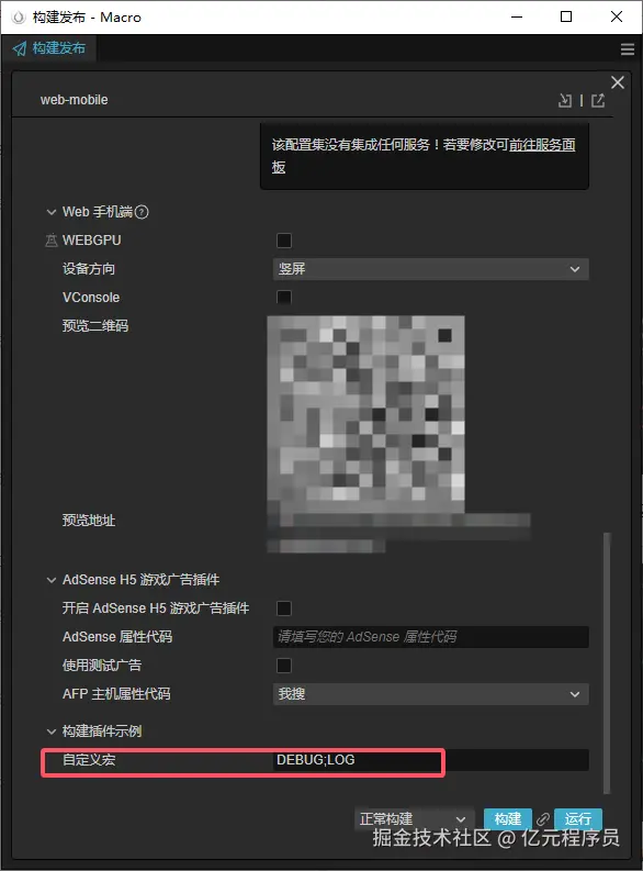 新建 web平台,自定义宏中输入DEBUG;LOG。