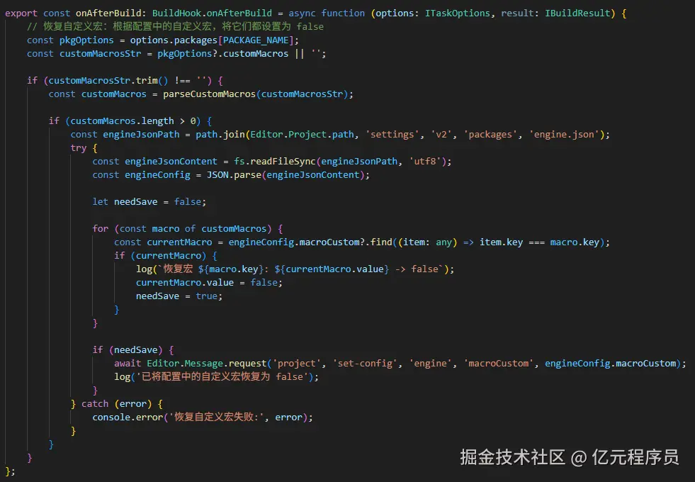 构建后恢复宏配置 :为了避免构建后宏影响了其他平台,我们需要将对应的宏进行恢复: