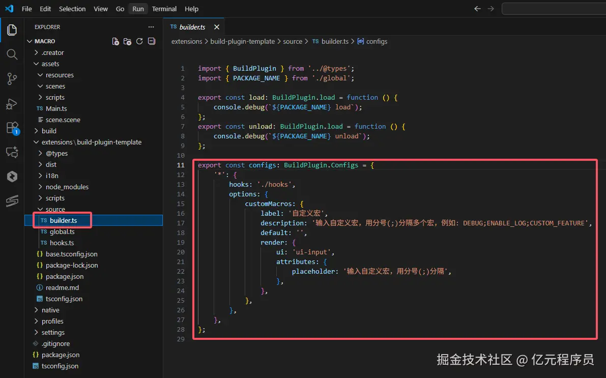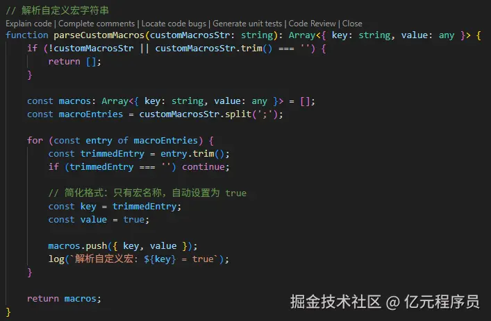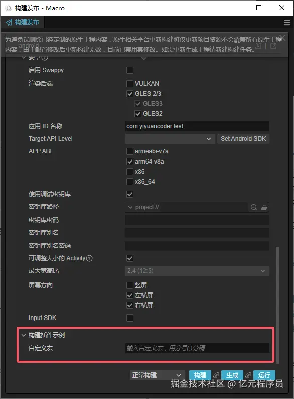 在 builder.ts中,删除不需要的代码,添加一个自定义宏的输入框,用于不同的平台输入指定的宏,用;隔开。