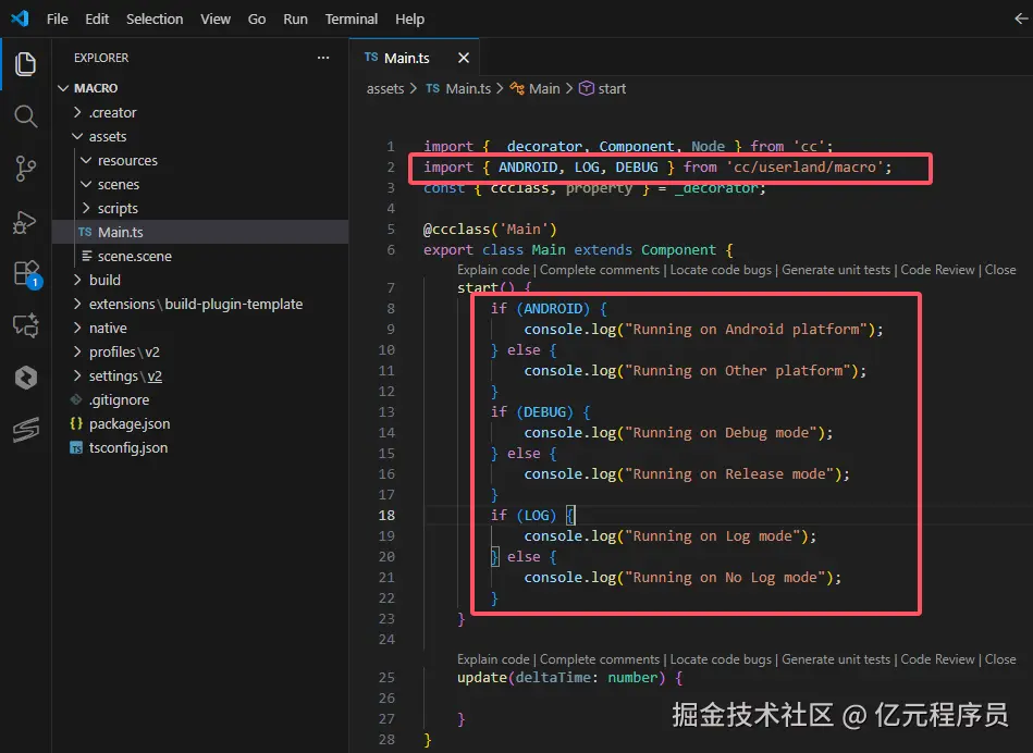 import { ANDROID, LOG, DEBUG } from 'cc/userland/macro';引入对应的宏。