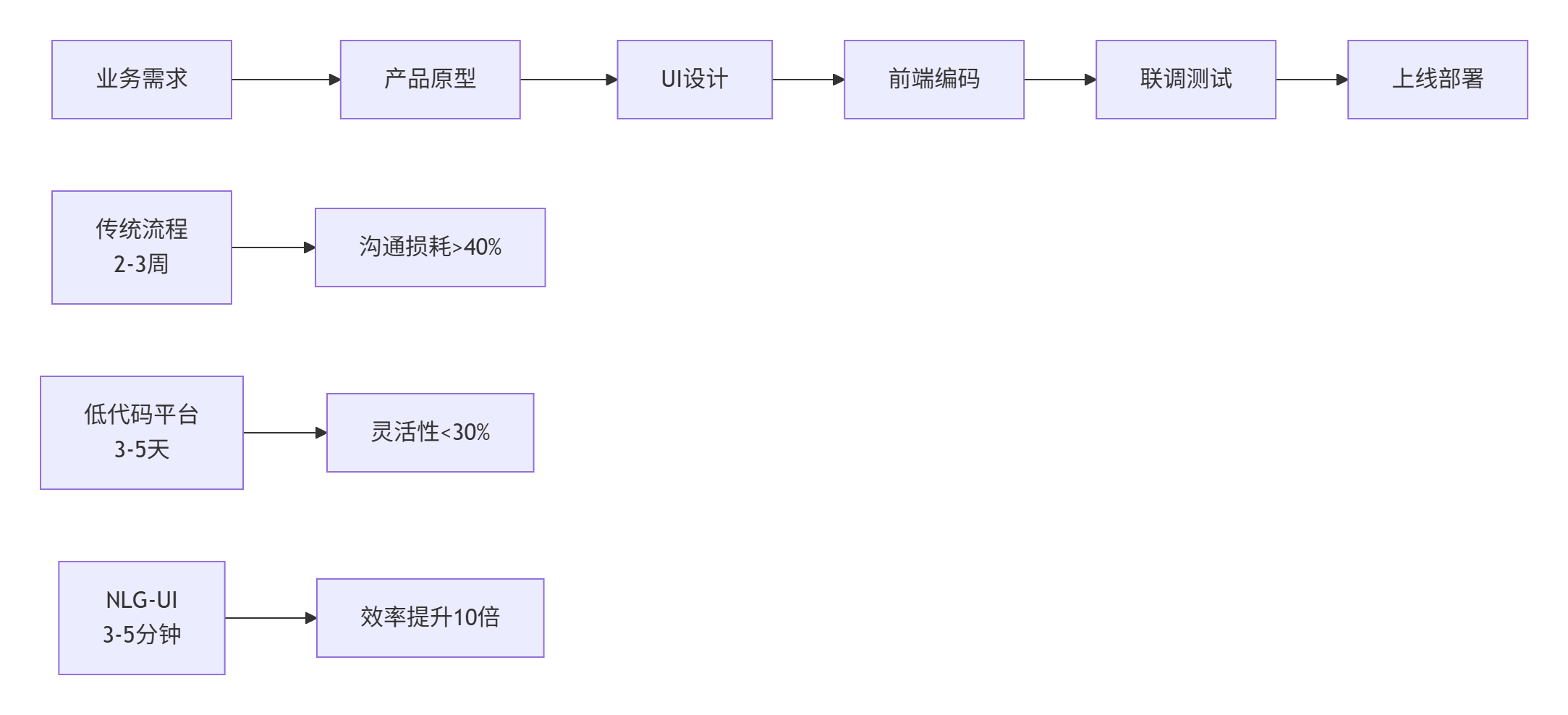 核心洞察 :NLG-UI不是简单的"AI辅助拖拽",而是需求理解的范式转移: