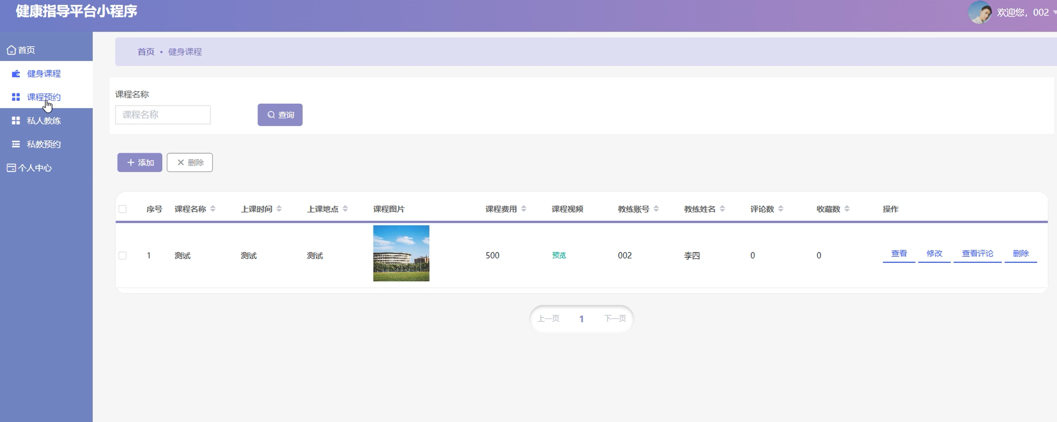 课程预约页面