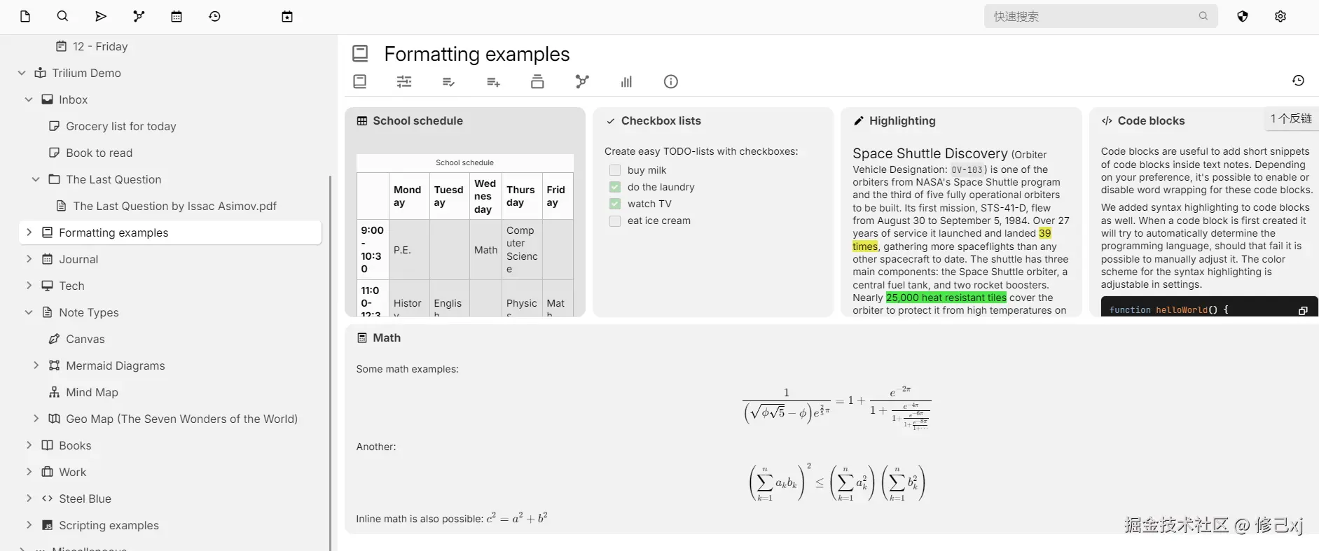 无论你是学生、研究者、开发者,还是终身学习者,Trilium 都能为你提供一个强大而灵活的知识管理平台。最重要的是------它完全免费,完全开源。