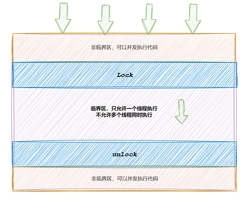 - 如果多个线程同时要求执⾏临界区的代码,并且临界区没有线程在执⾏,那么只能允许⼀个线程进⼊该临界区。