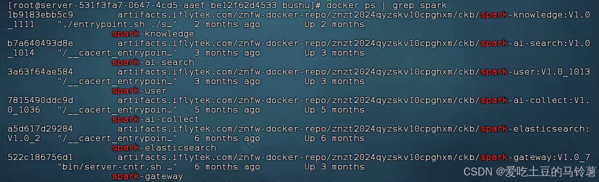 | 522c186756d1 | artifacts.iflytek.com/znfw-docker-repo/znzt2024qyzskv10cpg hxm/ckb/spark-gateway:V1.0_7 | spark-gateway |