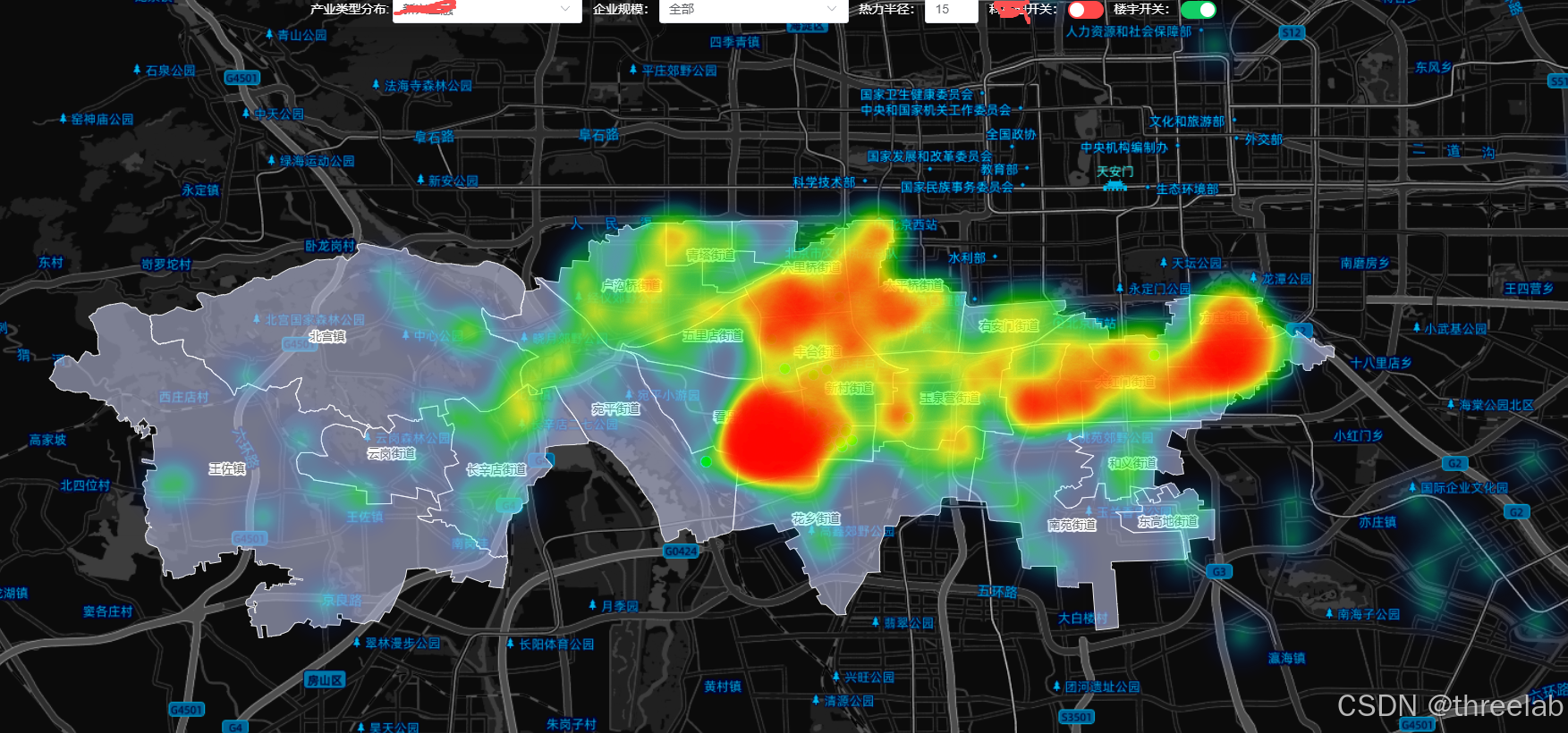 系统支持根据产业类型和企业规模进行数据筛选,实时更新热力图显示。