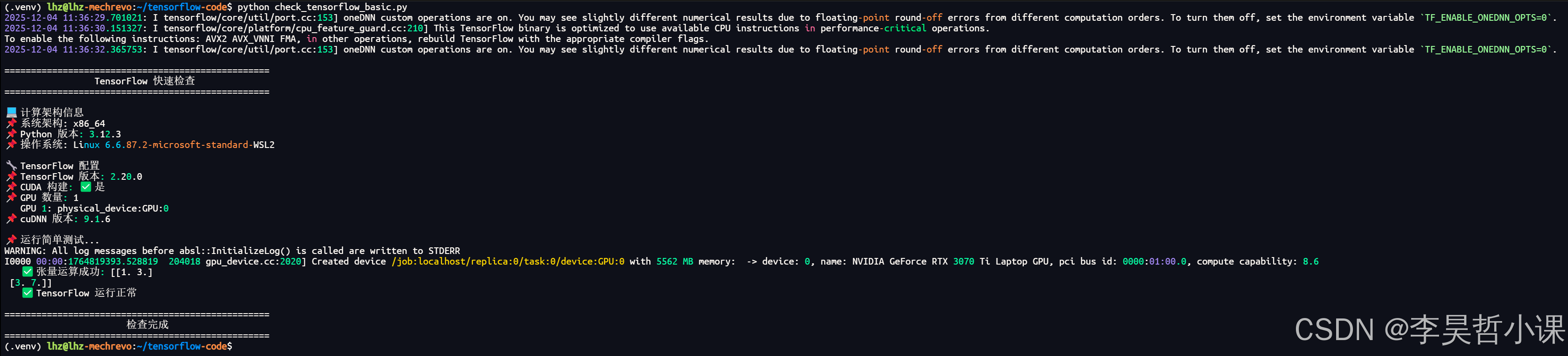 print_banner("TensorFlow & cuDNN 配置检查") # 打印程序标题横幅
